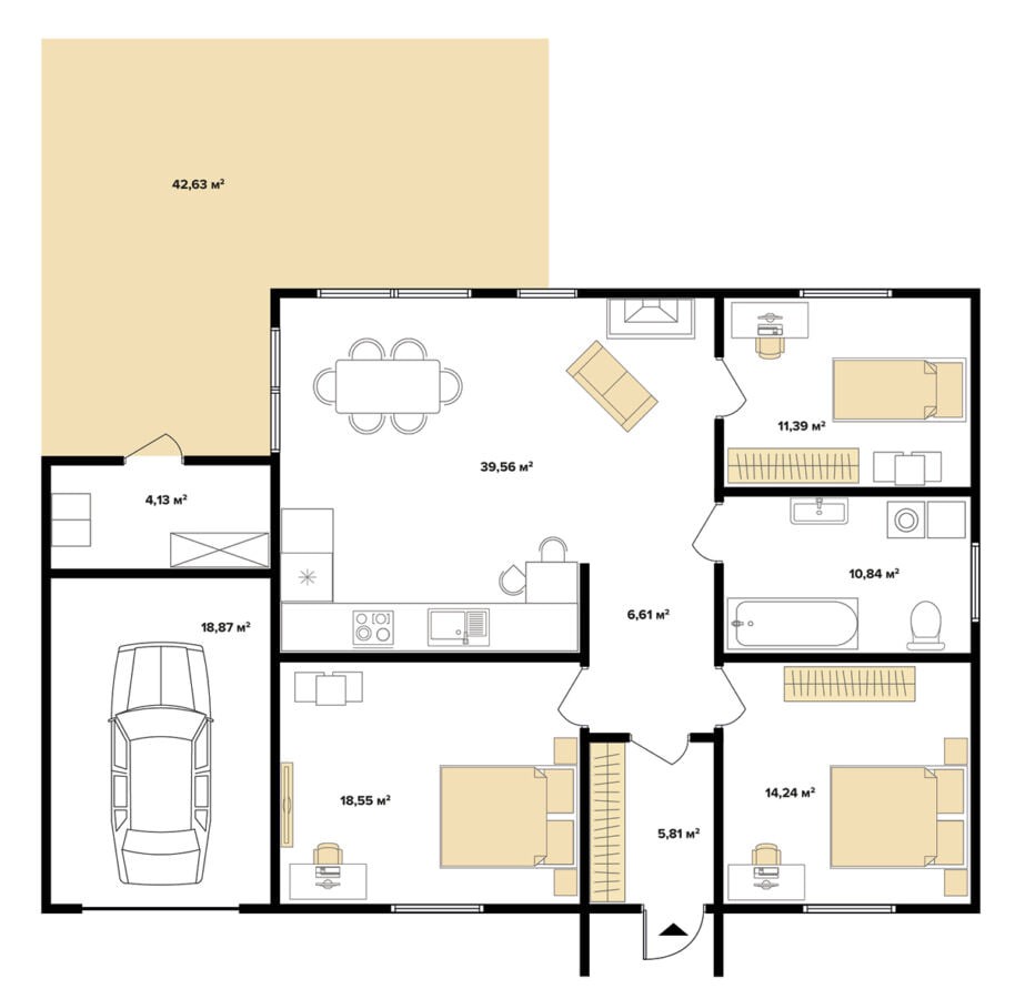 Будинок 1-поверховий з гаражем 152 м кв