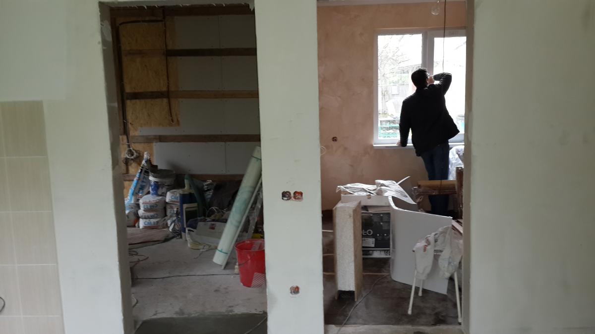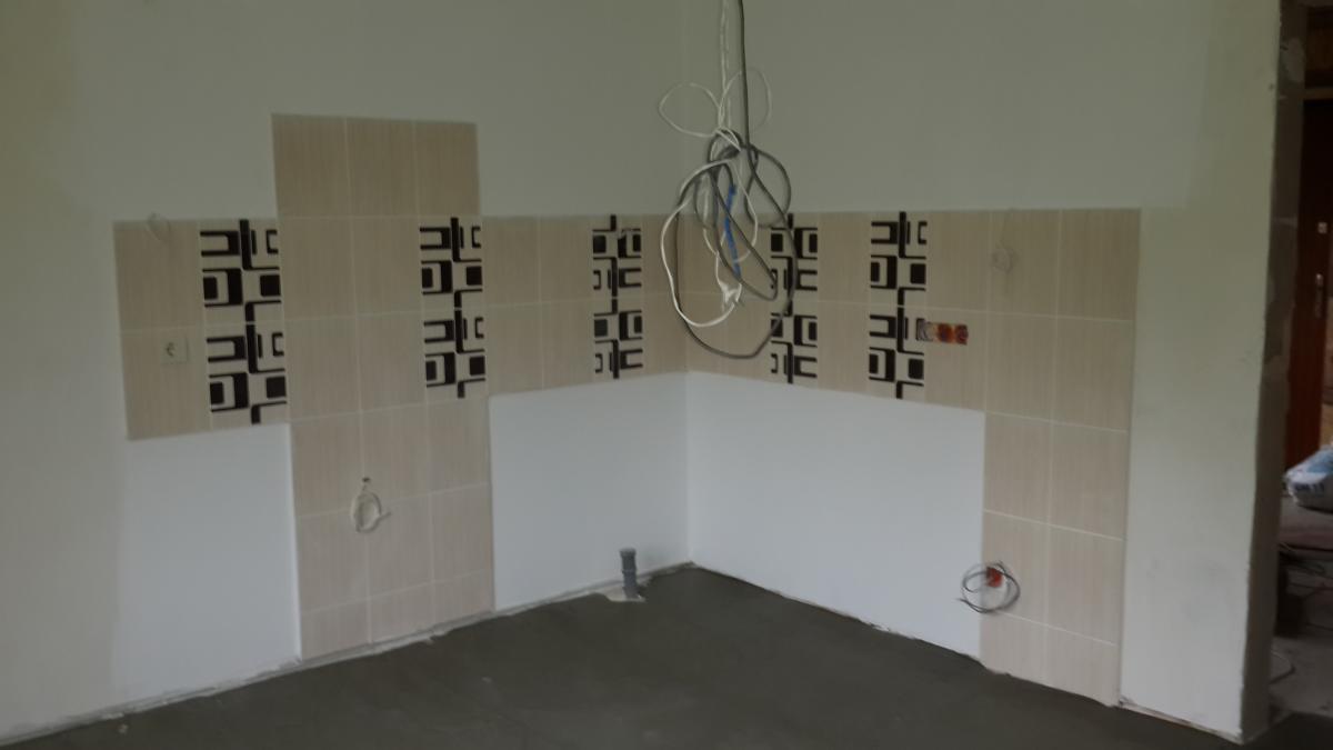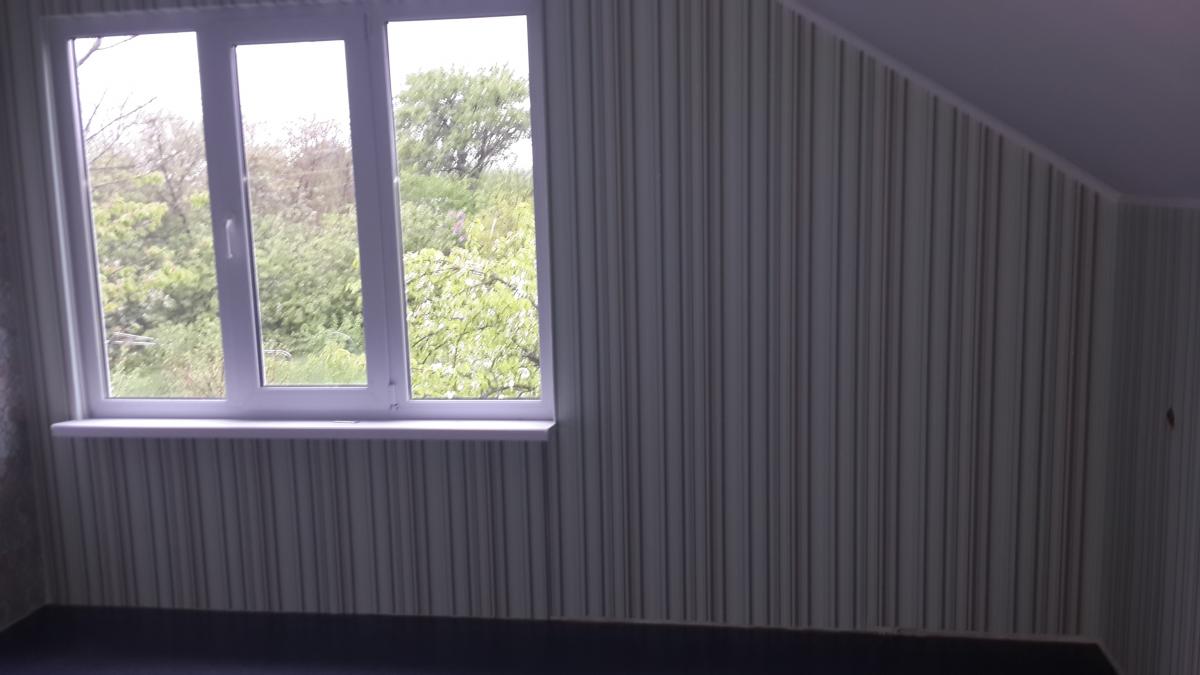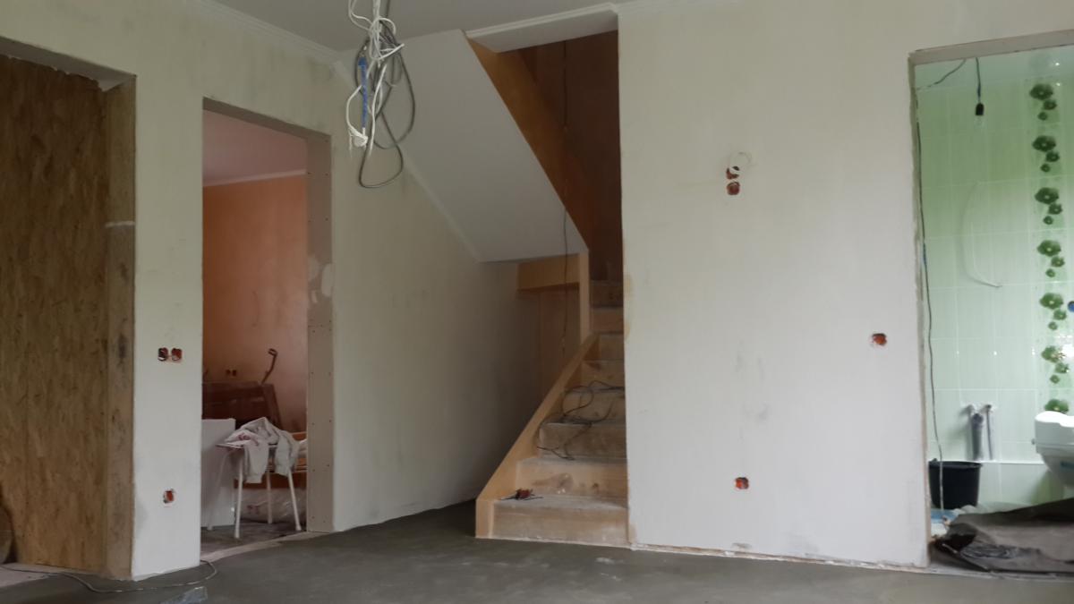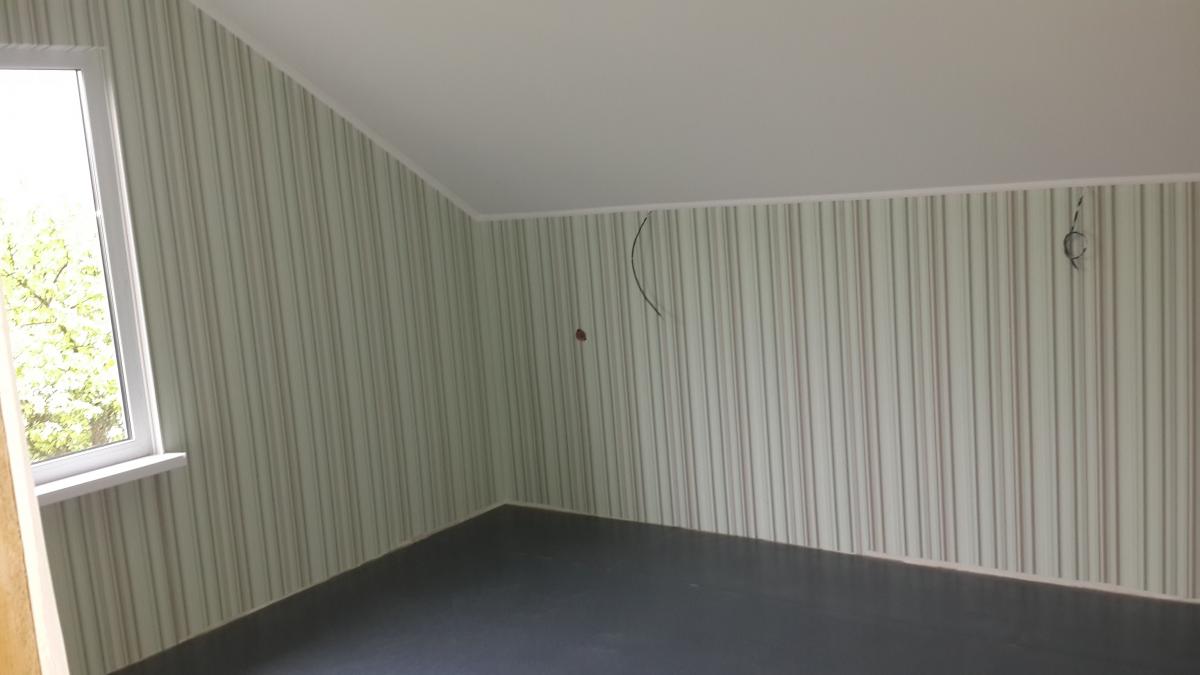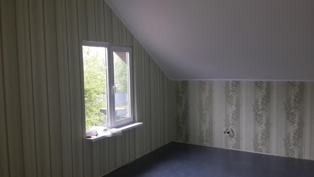 Будова двоповерхова, зовнішньої обробки не потрібно. На стрічкову основу були встановлені підлогові плити, змонтовані несучі панелі (стіни і перегородки), зроблено покрівлю, потім вироблено облаштування віконних і дверних прорізів, додатково зібрано стандартний ганок. Внутрішнє оздоблення досить просте - стіни обклеєні шпалерами, для кожної з кімнат обраний свій стиль. Простір санвузла оброблено керамічною плиткою.