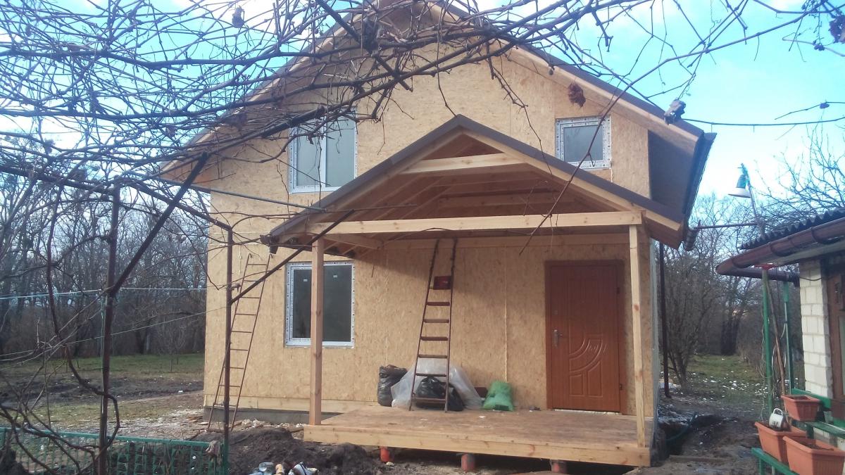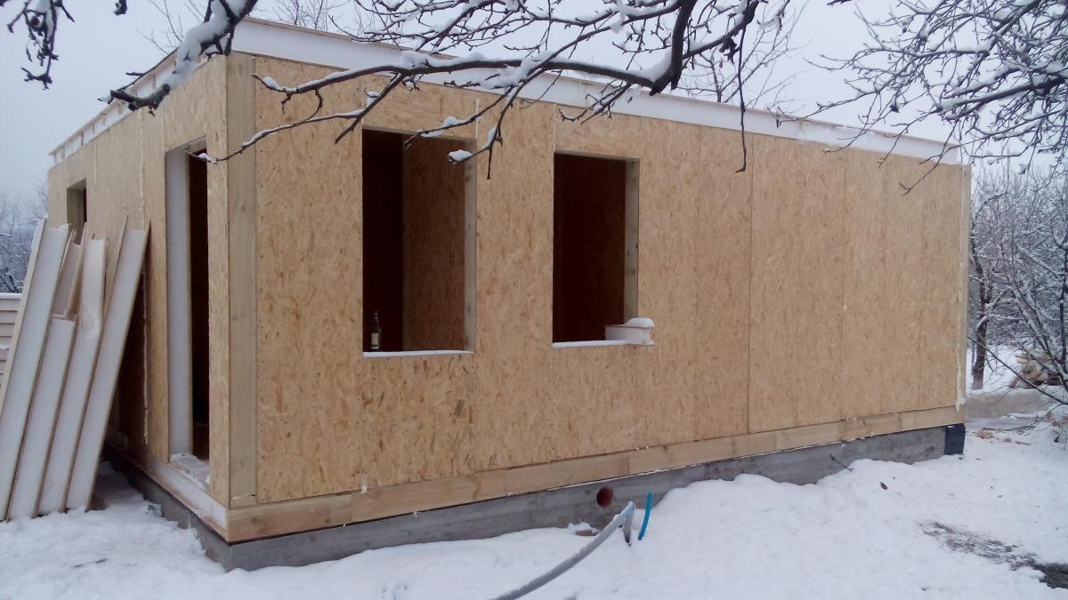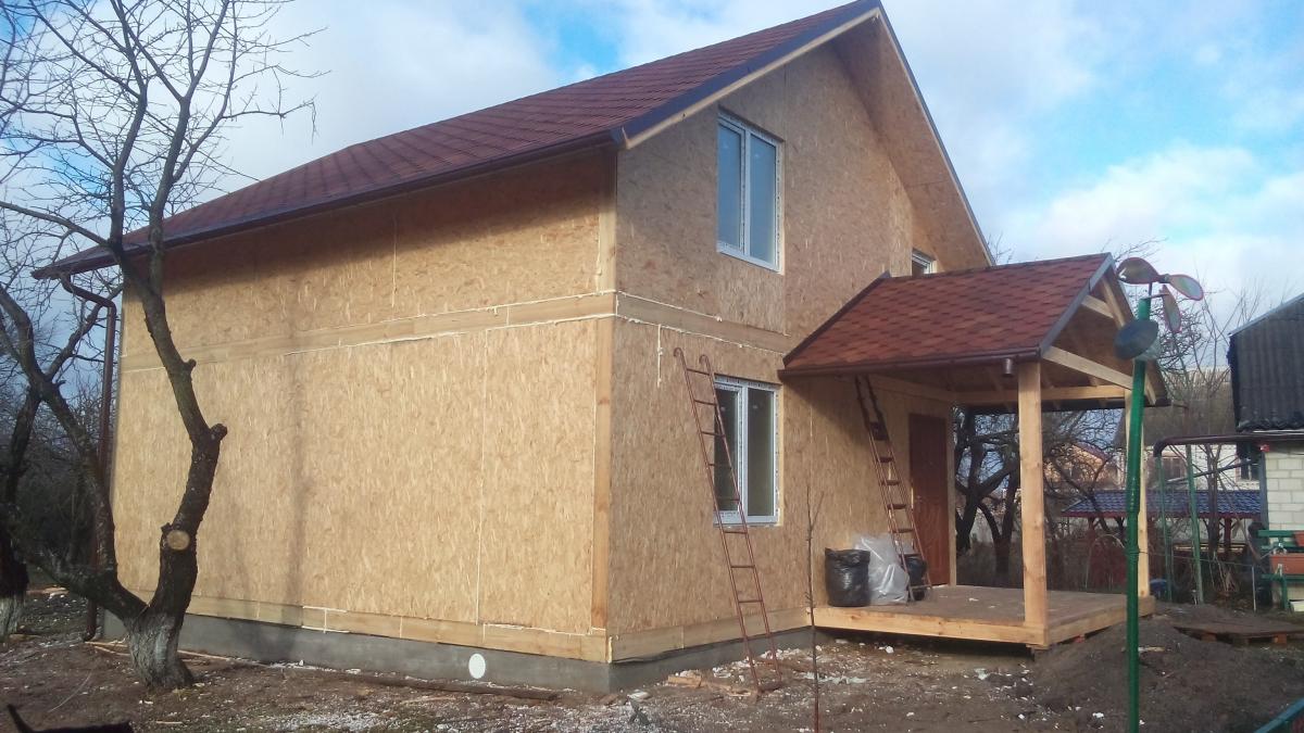 Бригада майстрів за короткий період зібрала каркасний будинок. Ціна за надані послуги залежала від розмірів і складності споруди - в даному випадку це був типовий проект, який обійшовся замовнику цілком бюджетно. Електропроводка, каналізація, інші комунікаційні роботи виконувалися паралельно при складанні каркаса і монтажі панелей. Важливо знати - на представлений будинок із сіп панелей, ціна невисока і цілком підійде навіть під економічний бюджет.