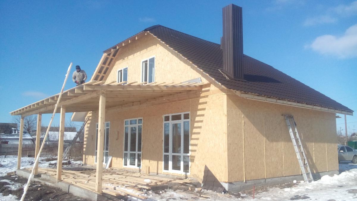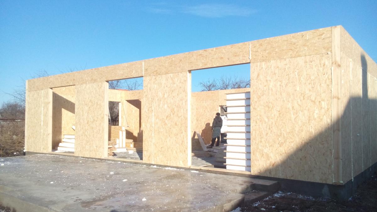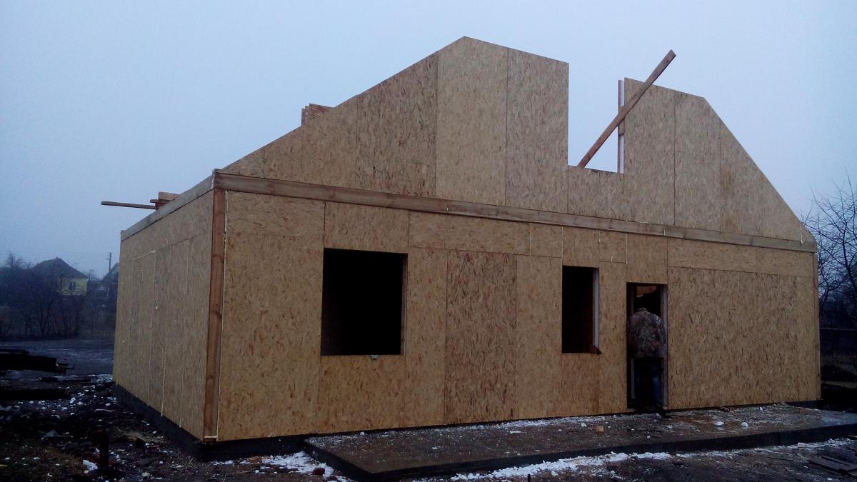 Будинок із сіп панелей зводиться у будь-який погодний період, тому будівництво розпочали взимку. Це не вплинуло на його теплові характеристики. Далі фахівці діяли за стандартною схемою: