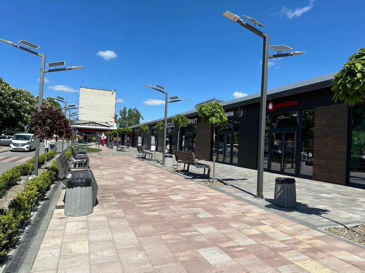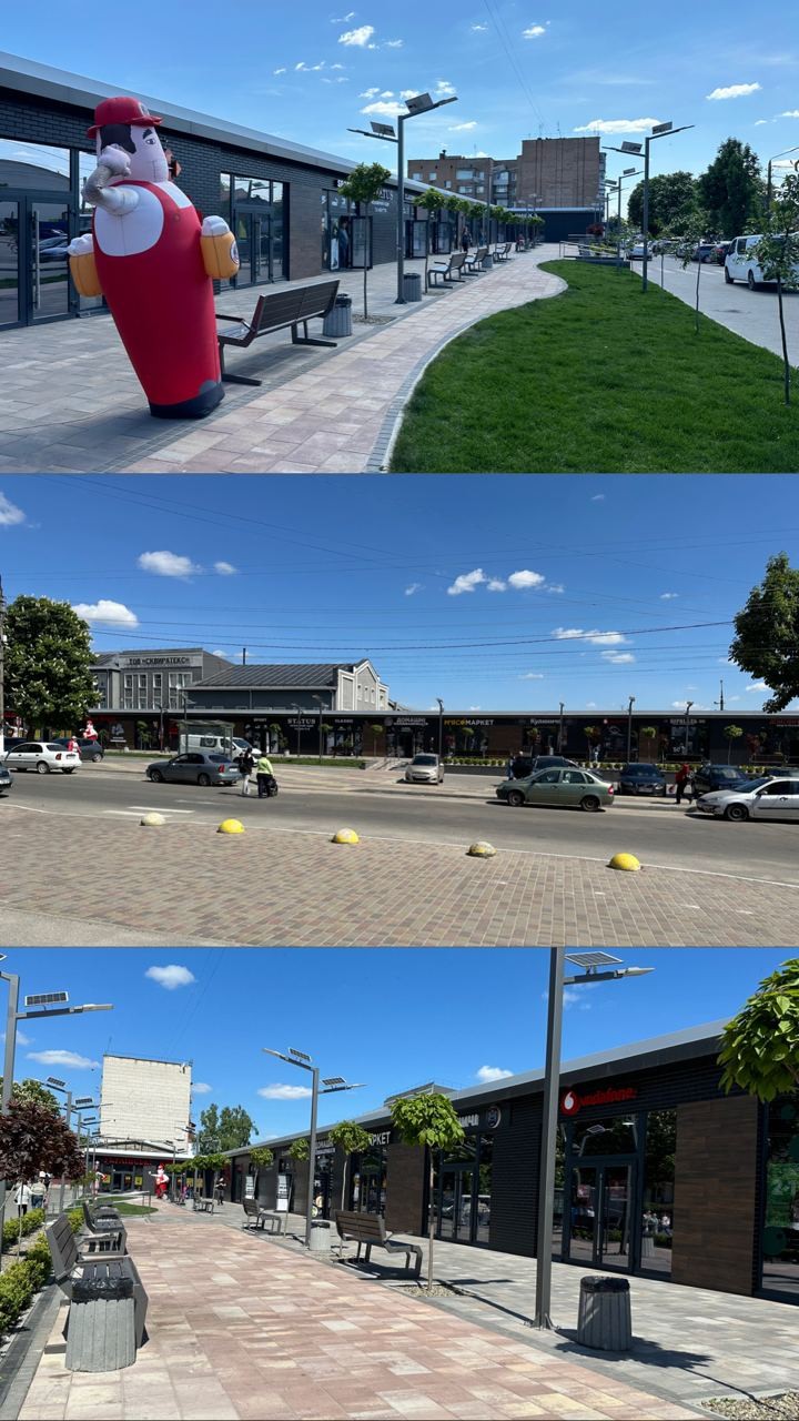 Фасади, виконані з термопанелей, надали комплексу сучасний вигляд, і тепер навіть не зрозуміти, з якого саме матеріалу зроблені ці магазини.